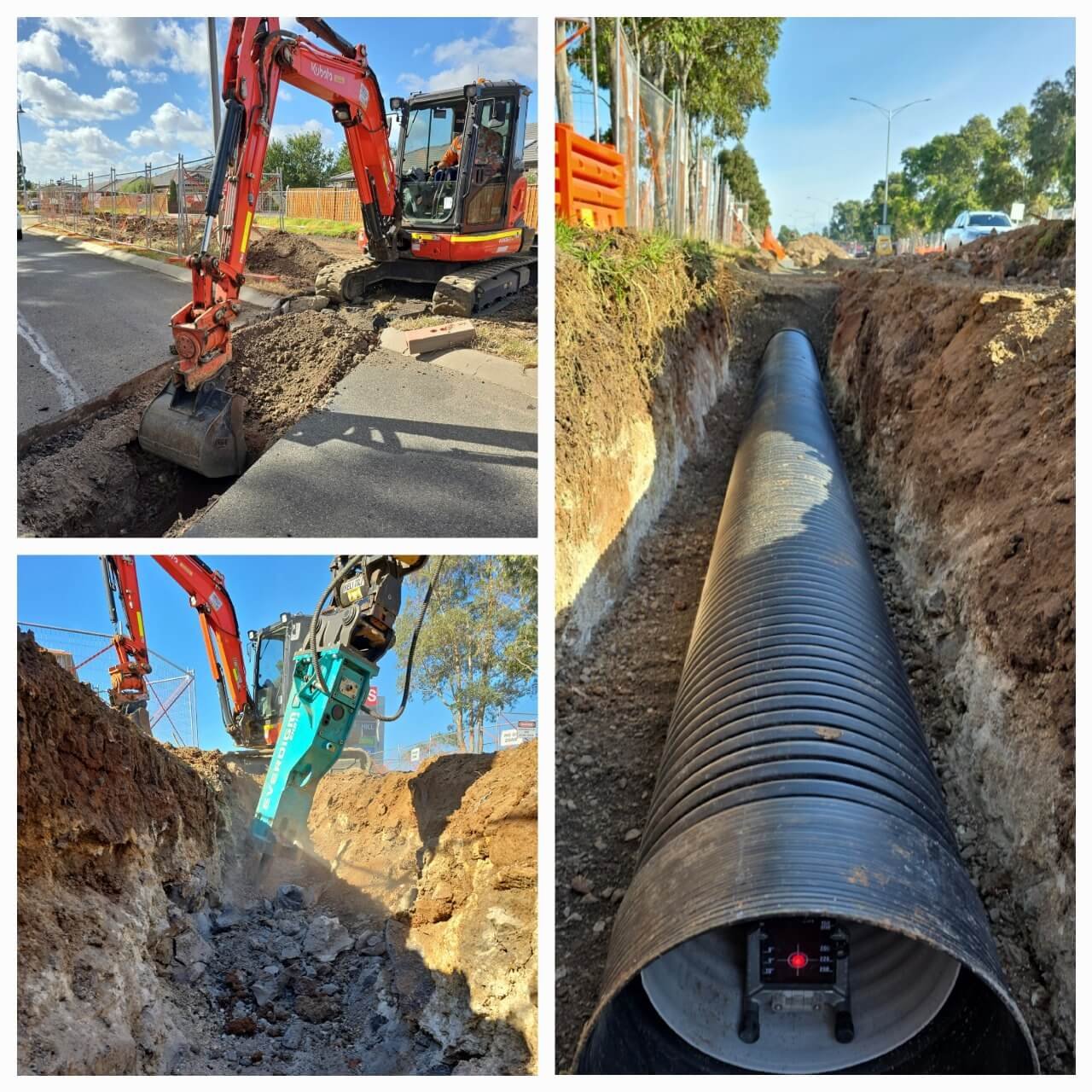 We completed 375mm RCP installation along with precast pits and boxed culverts on a road duplication project for our client MACA.